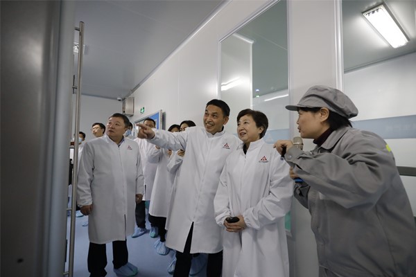 仪式结束后,牛予其副主席深入考察了天士力高速滴丸智能制造生产车间,详细了解了滴丸生产车间从规模化、自动化到数字化、智能化的发展历史,并对青年员工敢于创新、勇于挑战的精神风貌表示高度肯定。