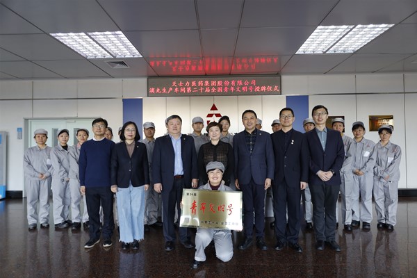 2021年12月21日,第20届“全国青年文明号”授牌仪式在天士力医药集团举行,天津市工商联副主席牛予其出席并向荣获奖项的滴丸生产车间授牌,天士力控股集团党委副书记、执行总裁朱永宏、医药集团总经理苏晶、控股集团团委书记刘朋等参加授牌仪式。