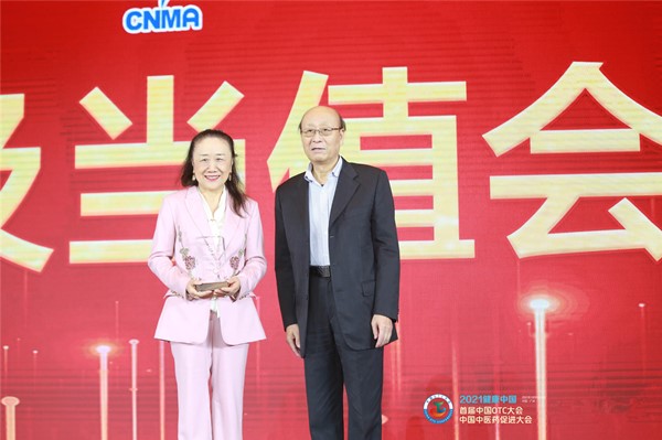 19日晚,大会表彰了2021年度自我药疗教育工作先进会员单位,天士力医药集团股份有限公司上榜。同时,闫凯境主席荣获“首届中国OTC大会荣耀人物”称号。