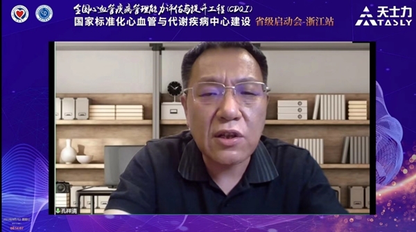 马长生教授致辞强调,CDQI项目旨在打造中国新的研究平台,加强各个中心间的联系,做好教育、培训,同时加强三甲医院之间,以及全国2000多家基层院之间的联系,做好中国的临床研究。他表示,在孔祥清院长的带领下,国家标准化心血管与代谢疾病中心做了一年的充分准备,逐步在各省推进工作。浙江省的经济、医学在全国都处于领先水平,在代谢领域的探索也必将领先。随后提到,天士力医药集团对浙江省以及全国的活动进行支持,希望未来能有更多围绕代谢领域的治疗药物推出。最后,他对孔祥清院长、黄翯院长及心血管代谢中心的专家团队表示了感谢,希望CDQI心血管与代谢疾病中心在浙江乃至全国的工作能够顺利推进。