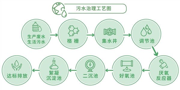 创新是天士力的基因表达与动力之源。在“环保先行、绿色发展”理念下,天士力加大力度投资节能减排和环保治理设施的升级改造。在天津总部,天士力厂区污水处理站设计采用“厌氧+好氧+MBR膜”工艺。生产废水主体处理工艺流程为:生产废水→格栅→集水井→调节池→厌氧反应器→好氧池→二沉池→絮凝沉淀池→出水达标排放,满足天津市《污水综合排放标准》(DB12/356-2018)三级要求至市政污水管网,由市政污水处理厂处理后排放。