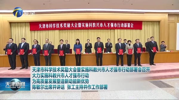 会上,天津市市委书记陈敏尔发表重要讲话。他强调,要坚持以习近平新时代中国特色社会主义思想为指导,全面贯彻落实党的二十大精神,深学笃用习近平总书记关于教育科技人才的重要论述,坚持创新驱动发展,扎实实施科教兴市人才强市行动,大力推进科技创新,着力建设高质量教育强市、科技创新高地和开放型人才高地,把天津科教人才优势转化为高质量发展的强劲动能,为国家科技自立自强贡献力量。