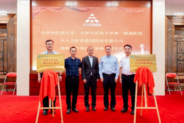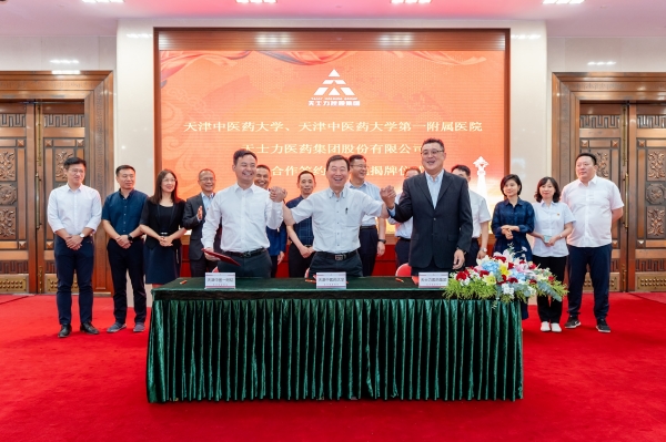 2023年6月1日,天津中医药大学、天津中医药大学第一附属医院与天士力医药集团股份有限公司战略合作签约仪式暨基地揭牌仪式在天士力集团成功举办。天津市商务局服贸处处长徐立华,天津市卫生健康委员会中医处处长于春泉,天士力控股集团总裁朱永宏,天津中医药大学副校长王耀刚,天津中医药大学第一附属医院副院长赵强,天士力医药集团股份有限公司常务副总经理蔡金勇,天士力医药集团股份有限公司国际事业部总经理范浩,以及天津中医药大学、天津中医药大学第一附属医院等相关领导出席了签约活动。