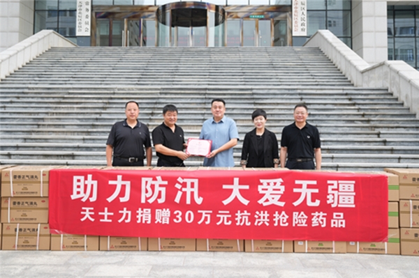 天士力医药集团心系灾情,时刻关注着防汛救灾情况,并迅速通过天士力公益基金会捐赠价值30万元的药品等物资,可用于救灾复产中的肠胃性疾病及高温防暑等,保障参与抗洪救灾一线人员及受灾民众的健康安全。