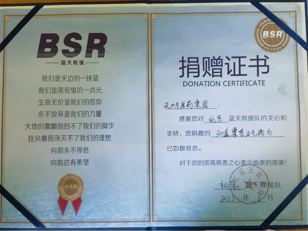 2023年7月中下旬,受台风“杜苏芮”等影响,我国北方多地发生洪涝和地质灾害,居民生活受到严重影响。暴风雨中,蓝天救援队迅速展开搜救工作,保护受灾群众生命安全。为驰援抗洪一线,天士力医药集团启动防汛救灾捐赠活动,向蓝天救援队输送藿香正气滴丸,为救灾人员及灾区群众送去温暖与力量。