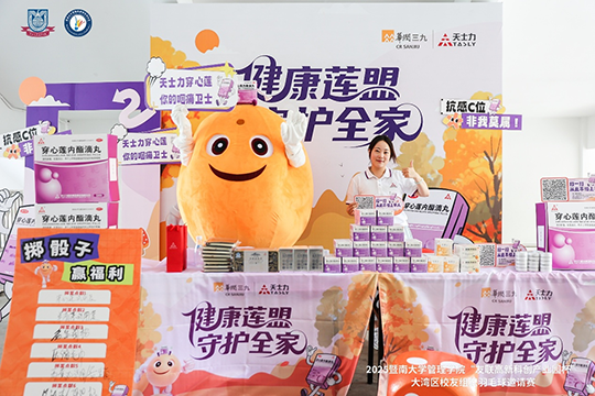 赛场边,天士力设立的“健康莲盟补给站”,成为选手和观众频繁驻足的活力角落。老师和同学们积极参与互动,不仅领取了天士力的大健康产品和周边,更深入地了解了品牌理念,以及产品在运动前后预防感冒、舒缓呼吸道不适的场景价值。