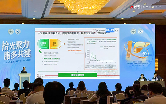 本次庆典设置了“MAFLD前沿学术进展”和“MAFLD多学科视角及综合管理”等多个学术环节。专家们在报告中强调了多学科协作在脂肪肝管理中的重要性,并介绍了新型药物及传统药物在治疗中的潜力,特别提及水飞蓟宾等传统药物在改善肝功能和心血管功能方面展现出的协同增效作用,以及水飞蓟宾-磷脂复合物具有的稳定肝细胞膜、抗氧化等作用,能够为MAFLD治疗提供有效支持。